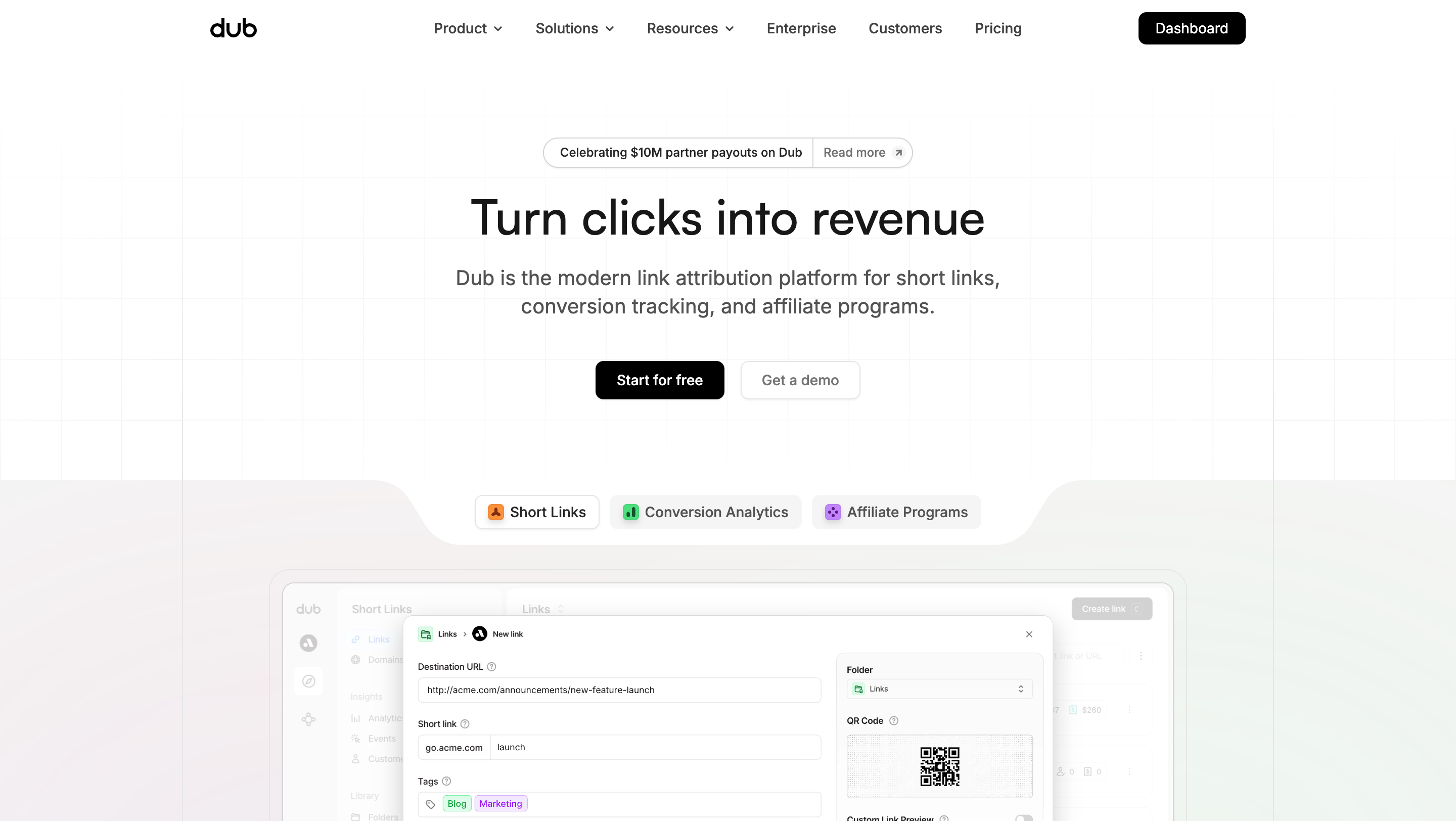 Modern link attribution platform for short links, conversion tracking, and affiliates