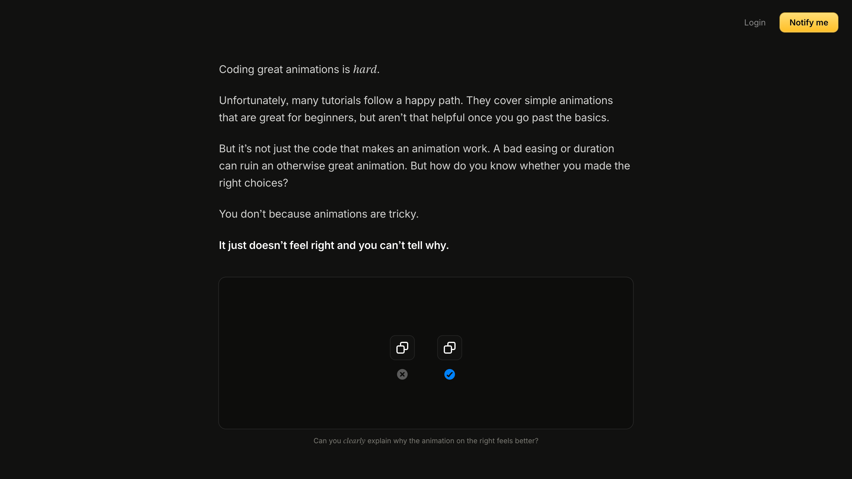 How do you craft animations that feel right? Learn the theory and practice behind great animations with this interactive learning experience.