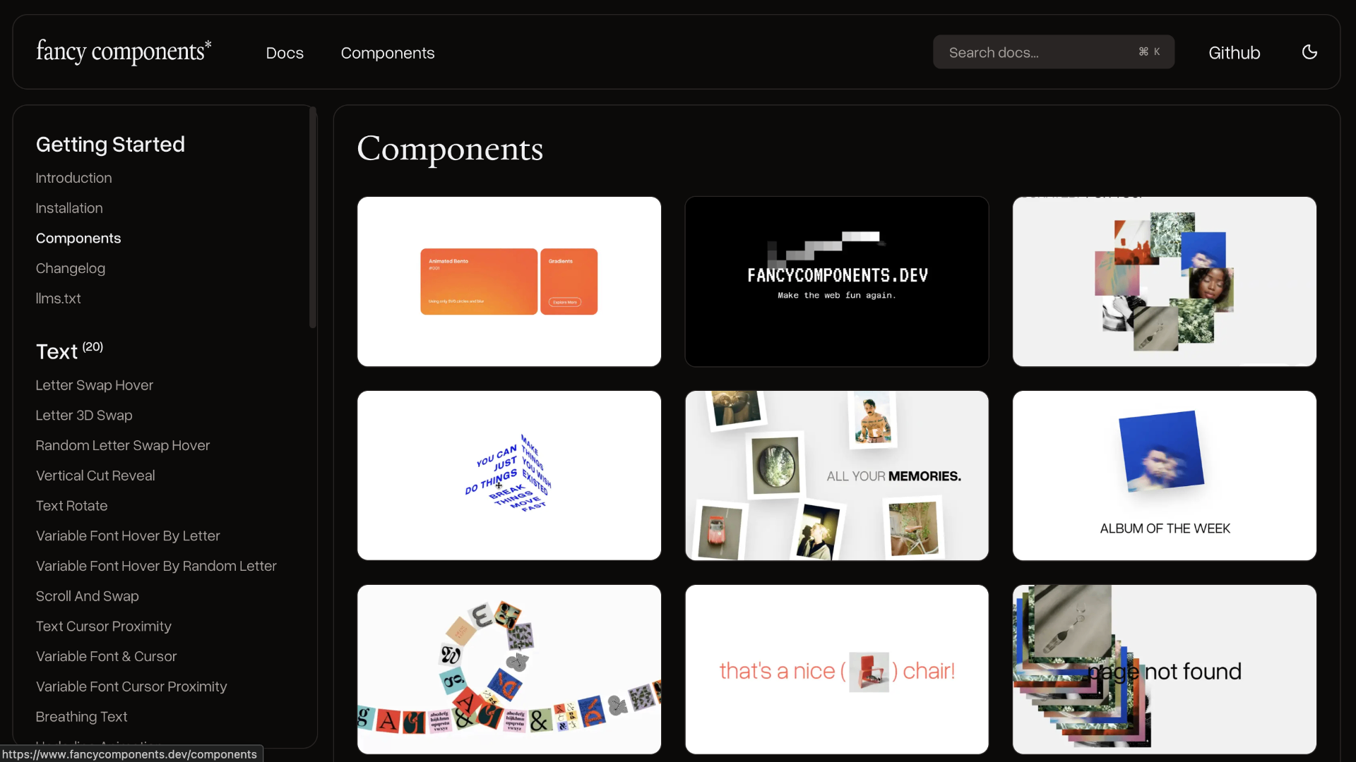 Daniel Petho looked at the modern web and thought: "this is all a bit boring, isn't it?" Fancy Components is the answer, a growing collection of weird, fun, and sometimes intentionally useless React components and micro-interactions. Letter swap hovers, elastic physics lines, animated gradients: the kind of details you see on Awwwards-winning sites but never know how to build. Daniel's a design engineer who's worked at xorxor and departd building AR experiences, and this project is basically a personal playground turned open source library. Built on shadcn's structure, so it fits right into modern React workflows.
